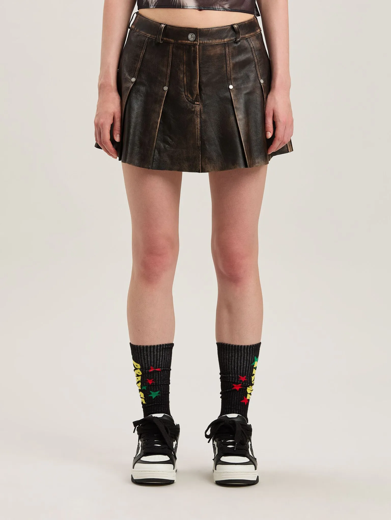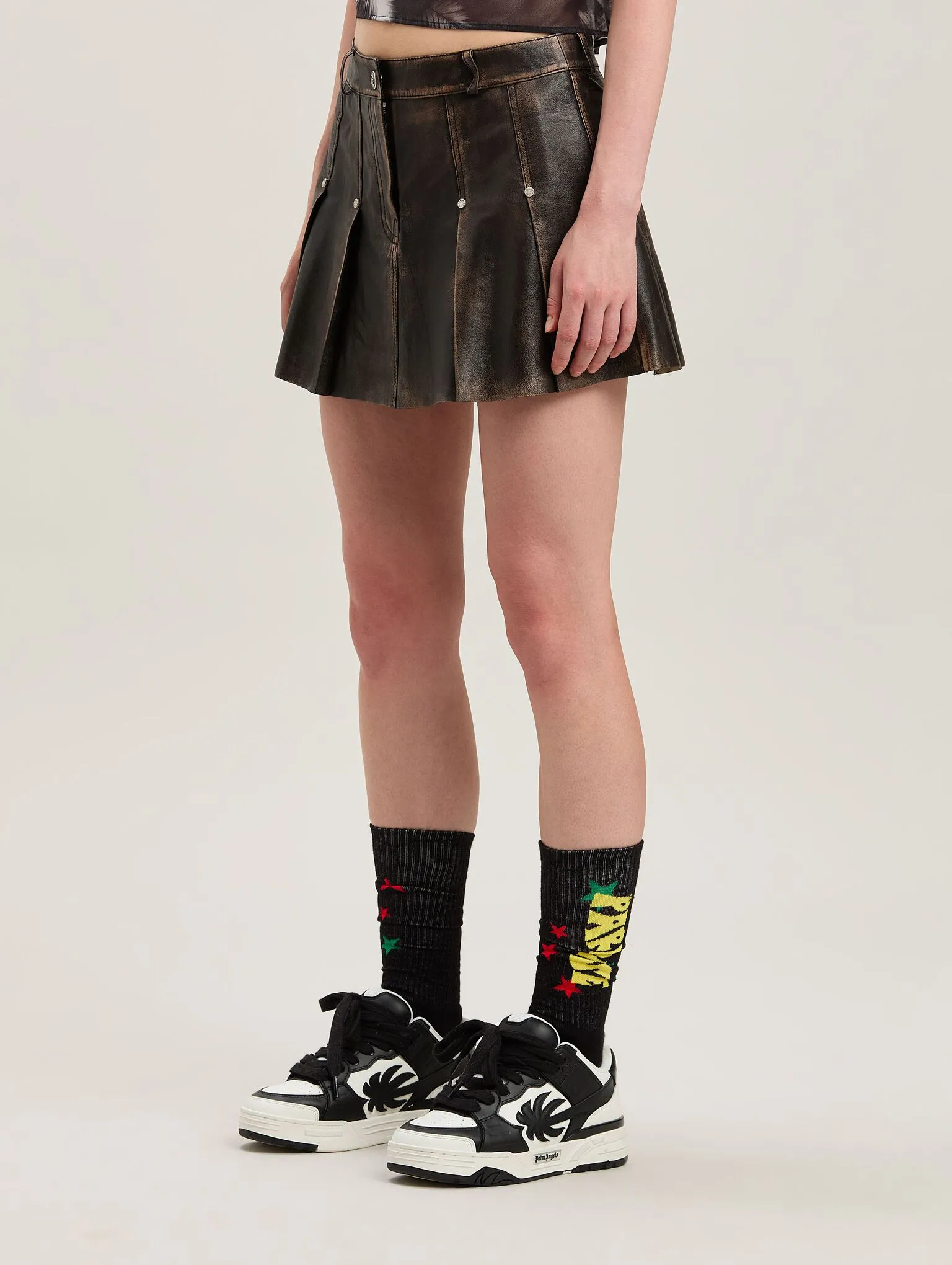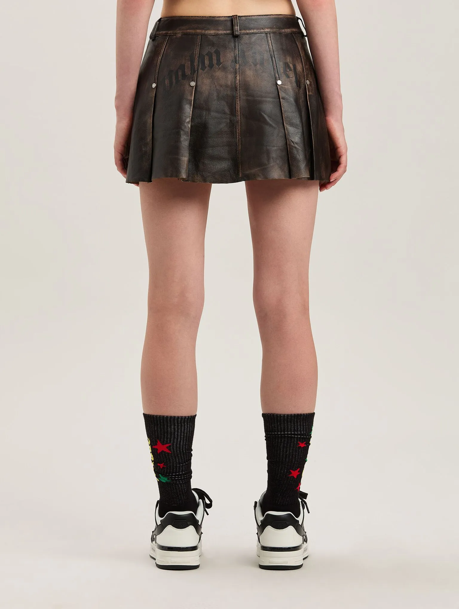 curved-logo-brown-lea-pleated-skirt-5